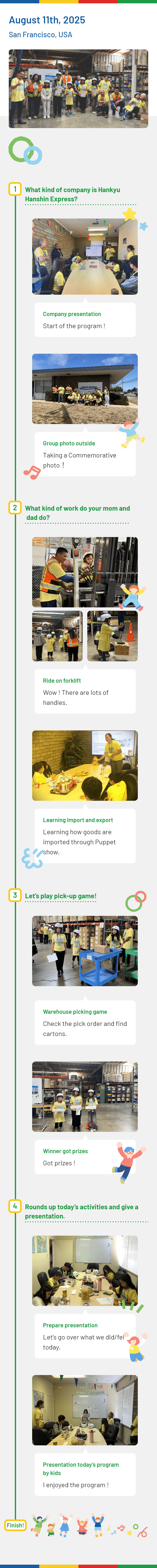 A time for special moments in the workplace to be shared with our families, the very people that sustain us each dayーthat is the Kid’s Program. What kind of work do you do? Where do you do? And who do you do it with? The Kid’s Program helps your child answer these questions through hands-on experiences that include visiting your workplace or touring operational facilities. At the same time, the program helps you, as a Hankyu Hanshin Express employee, remember that your precious family is there for you. In this way, the Kid’s Program aims to create a comfortable working environment where families come first.