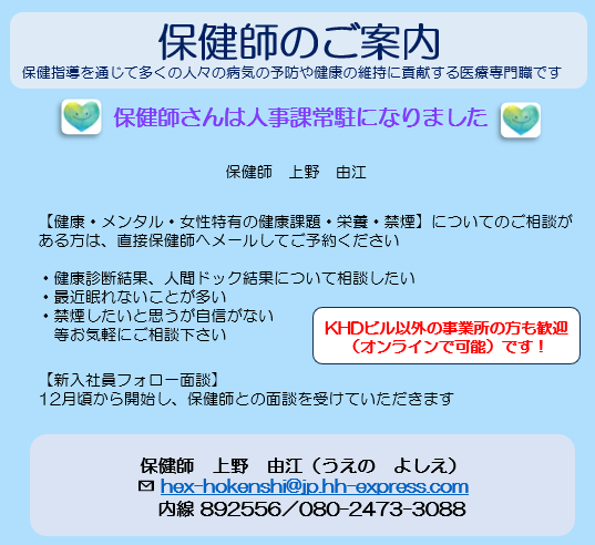 保健師により定期健康診断事後面談/メンタル・健康についての各種相談対応